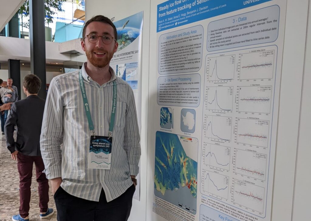 Ross is studying the Antarctic ice sheet using satellite data; the satellites he uses produce images using microwaves instead of light allowing us to see through clouds and at night, both of which are very important in the polar regions. By collecting images across Antarctica every 6 and 12 days, he’s been able to see changing features in the ice, such as cracks. He then uses an algorithm which takes two images to see where these cracks have moved over time and, from this, estimates how fast the ice is flowing.